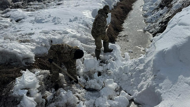 В городе Алтай военнослужащие воинской части №68303 имени Касыма Кайсенова МЧС РК вместе со спасателями провели комплекс противопаводковых работ. Для этого очищают арыки и водопропускные каналы. Именно такие системы, чаще всего и становятся узким местом: если они забиты, вода быстро выходит из берегов и идёт во дворы и дома.