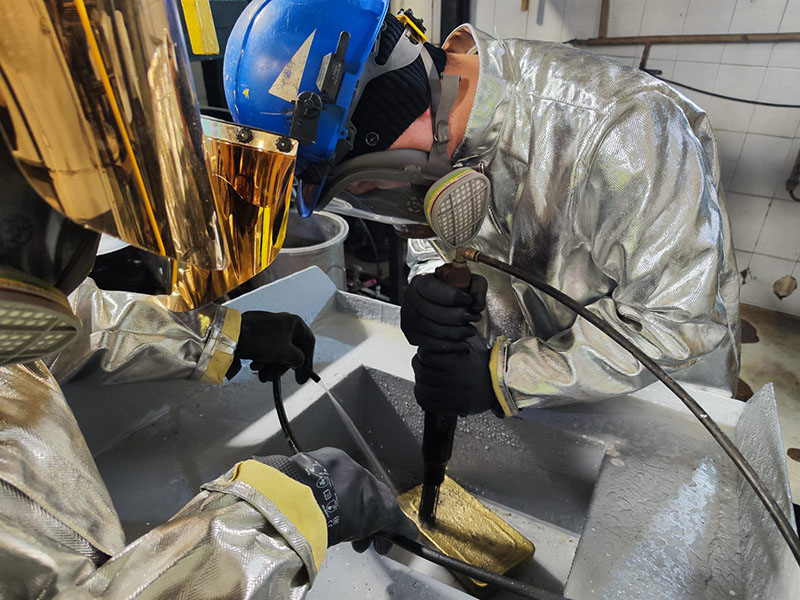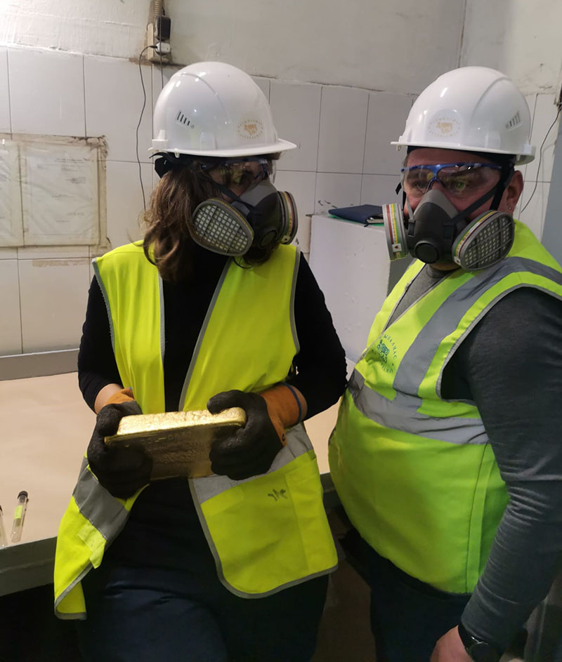 Смотреть на то, как плавят драгоценный металл, можно бесконечно. Сначала он стекает из одной формы в другую, словно по ступенькам, потом его охлаждают, шлифуют и доводят до состояния идеального слитка сплава доре. Это такой золото-серебряный сплав, где содержание золота варьирует от 60 до 90 %. Дальше слитки доре отправляют на аффинажный завод, где их очищают и доводят до тех самых 99,9 %, из которых делают банковские слитки.