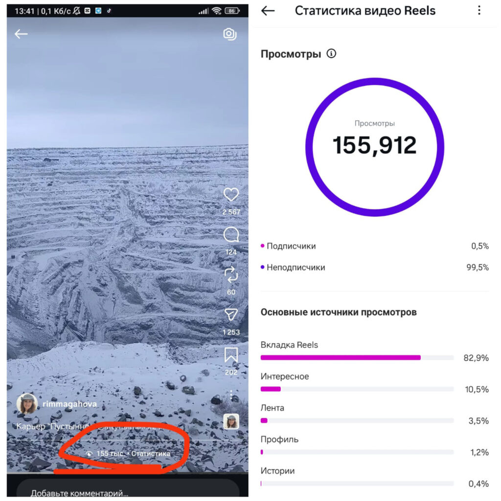 Кого-то беспокоила экология, кто-то интересовался, куда дели золото. В итоге под постом собралось 124 комментария и 155 тысяч просмотров. Для аккаунта, где десять лайков – уже достижение, это нереальный уровень популярности.