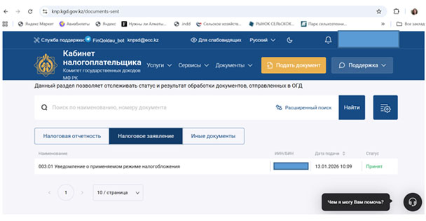 • Чтобы убедиться в том, что вы остались на упрощенке, зайдите в раздел «Мои документы», нажмите кнопку «Налоговое заявление». Должен высветиться статус «Принят».
