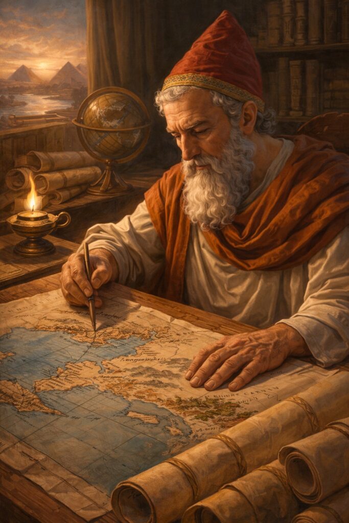 Долгое время считалось, что Клавдий Птолемей ошибся с координатами древнего города-порта или слишком доверился рассказам путешественников. Изображение сгенерировано нейросетью