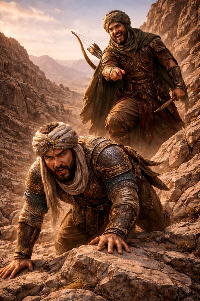 Всего два лучника могли отразить нападение хорошо вооруженного войска. Узкая тропа и крутой склон делали город неприступным. Изображение сгенерировано нейросетью