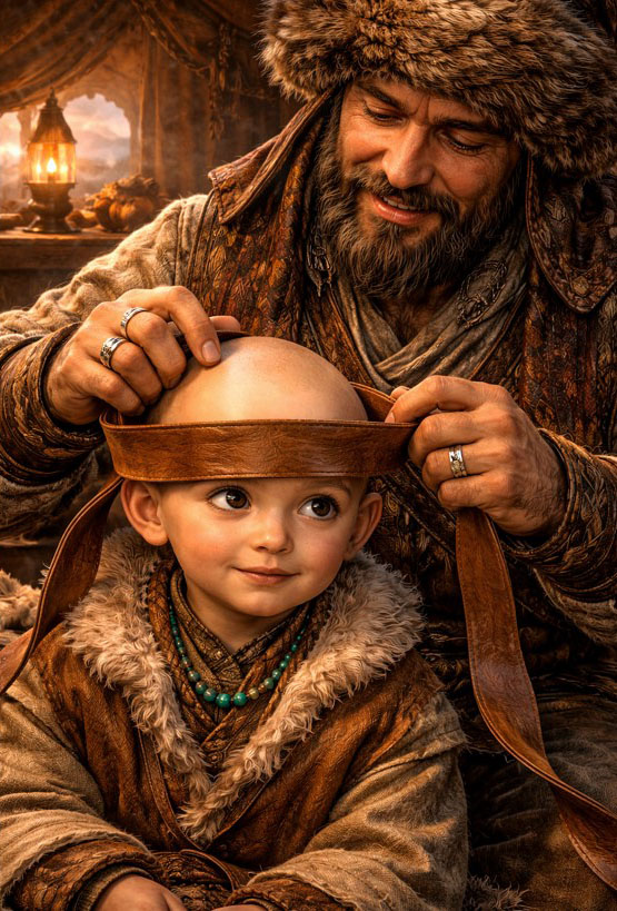 Искусственное изменение формы черепа применялось, чтобы подчеркнуть принадлежность ребенка к высокому статусу. Изображение сгенерировано нейросетью