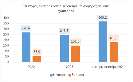 Но самое тревожное в этой истории — это стремительный рост импорта. Судя по данным глобальной базы по внешней торговле TrendEconomy, за год он подскочил на внушительные 48 %, тогда как экспорт вырос всего на скромные 19 %. Разрыв становится всё более очевидным. Выходит, мы всё больше полагаемся на чужое мясо, вместо того чтобы развивать собственное производство.