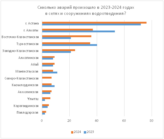 Главный прорыв в буквальном смысле случился в Западно-Казахстанской области. Здесь число аварий выросло на 68 случаев. На втором месте по росту аварий Павлодарская область (+33 аварии). Следом идут Абайская область (+22) и Карагандинская (+15). Даже в Улытау — регионе, где воды меньше, чем песка, аварий стало больше почти вдвое.