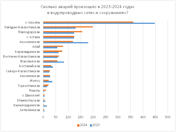 В Астане в 2024 году случилось 123 порыва, в Шымкенте — 5. Ровно столько же, сколько в 2023 году. Такое впечатление, что там в отчётах менять цифры не принято.