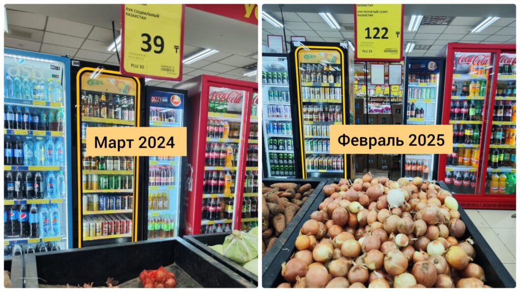 А вот с луком ситуация чуть интересней. В 2024 году валовой сбор этого овоща составил 756 тысяч тонн (или 7,6 млн центнеров). Лука у нас, казалось бы, завались. Вспомним март прошлого года: его оставалось столько, что супермаркеты сбрасывали цену до 39 тенге за кило – практически даром отдавали. Теперь его отпускают по 98-122 тенге за кило.