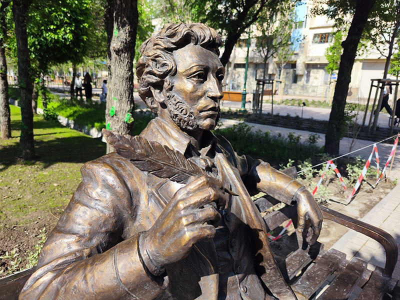 Скульптурная композиция находится чуть выше Центральной мечети. В социальных сетях пишут, что идея великолепная. Можно сесть рядом с Пушкиным, поделиться с ним новостями и мыслями, сфотографироваться с ним. Но пользователи Сети заметили одну особенность: Пушкин немного на себя не похож. Появились казахские скулы и куда-то делись арабские черты.