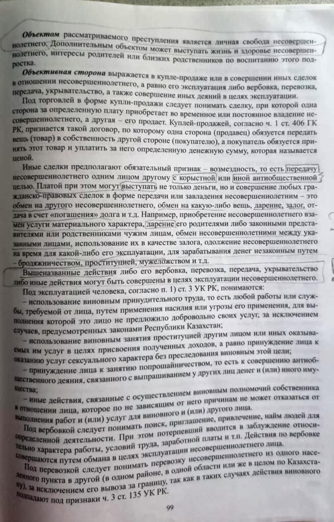 Вместе с тем, адвокат приемных родителей мальчика — Алмас Абдакасов — на суде подчеркнул: статья 135 УК РК создавалась для противодействия эксплуатации несовершеннолетних. И звучит она следующим образом: «купля-продажа или совершение иных сделок в отношении несовершеннолетнего, а равно его эксплуатация либо вербовка, перевозка, передача, укрывательство, получение, а также совершение иных деяний в целях эксплуатации – наказываются лишением свободы…»