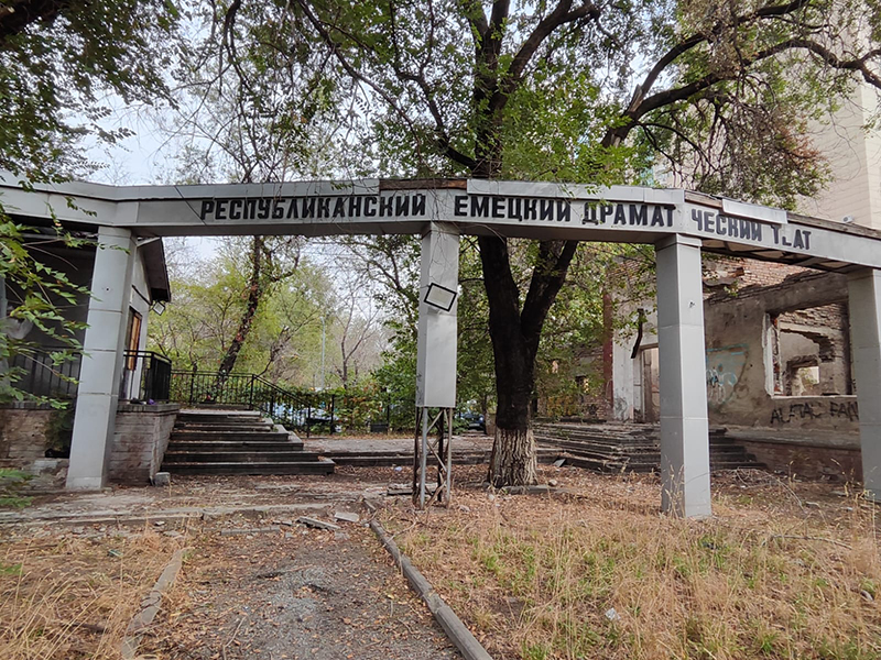 И всё бы ничего, если бы на этом месте не стояла целая глава нашей культурной истории. Здесь когда-то располагался Республиканский немецкий драматический театр, основанный в 1980-м в Темиртау для сохранения наследия немецкой диаспоры. В 1989-м театр переехал в Алматы. Ему отдали помещение бывшего кинотеатра, построенного пленными японцами в 1945 году (эта деталь тоже – часть истории). Театр ездил по фестивалям, светился в афишах. В 2016 году государство выделило деньги на его реконструкцию. Планировалось построить второй этаж и расширить помещение, чтобы было комфортно и актерам, и зрителям. Но деньги были украдены, суд приговорил подрядчика и руководителя театра к тюремным срокам.