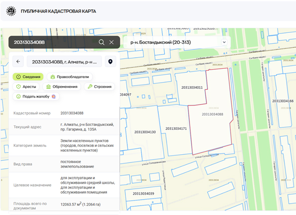 Первая серия: акимат заявил, что где-то здесь по плану должна быть школа, и даже в Telegram-канале Almaty_akimdigi появилось сообщение о том, что жилищную стройку компаний «CAMH Realty» и «ВЕК-Тұмар» приостановили, а границы участка уточняются. Вторая серия: «ВЕК-Тұмар» сообщил в СМИ, что работает строго по закону, все разрешительные бумаги имеются, с печатями и подписями. Третья серия: публика недоумевает — будет школа или всё закончится как обычно, парой новых высоток? И вот четвёртая серия: в Публичной кадастровой карте указано, что рядом с этим пятаком должна разместиться не только школа, но и общежитие. Причем на месте исторического объекта. В общем, сценаристам «Санта-Барбары» есть, чему поучиться.