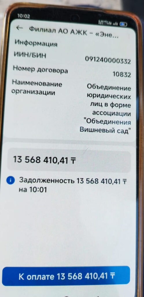 — В период 2009-2013 годов коммунальные платежи собирали председатели двенадцати СТ и передавали в кассу ассоциации. С 2014 года эта функция перешла непосредственно к кассиру объединения. До 2023 года факты критической задолженности за коммуналку мне не были известны. Ситуация изменилась в конце 2024 года. Тогда пришли квитанции с приложения Kaspi, и стало понятно, что у объединения огромные долги перед РЭС.