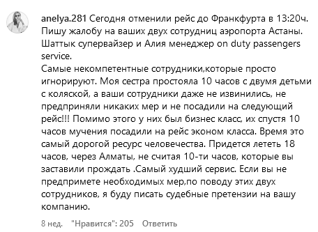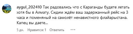 Национальный авиаперевозчик недавно опубликовал на своей странице в соцсетях видеопамятку для пассажиров. Ничего особенного – стандартные советы, которые могут пригодиться новичкам. Однако публикация вызвала всплеск негатива. Многие пассажиры возмутились, потому что «Эйр Астана», которая призвала к пунктуальности, в последнее время славится не ею, а бесконечными опозданиями. На это жалуется большинство недовольных.