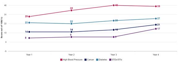 Около 60 процентов наших женщин в стране хотя бы раз за год были у врача. Это среднемировой показатель. Зато с профилактикой беда. На обследования и скрининги ходит лишь треть женщин, тогда как в Европе таких почти в два раза больше. По данным исследования, в 2024 году 39 % женщин проверяли давление, 27 % — проходили онкотесты, 21 % — сдавали анализы на диабет и лишь 17 % — на инфекции, передающиеся половым путём. То есть большинство обращается к врачу только тогда, когда уже есть симптомы, а не на всякий случай.