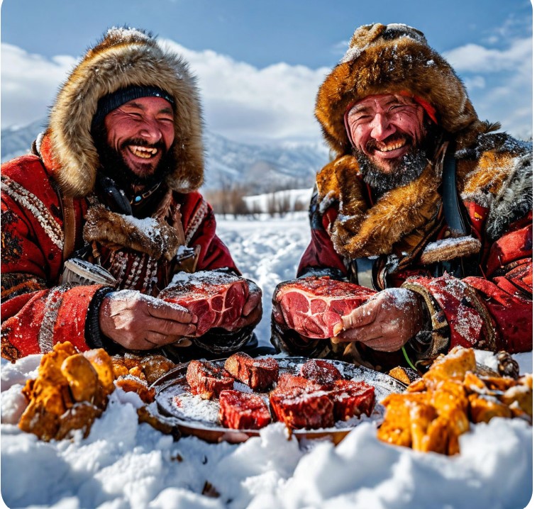 В наших же краях это большинству кочевых племен не грозило. Во-первых, это культура заготовки согыма. На морозе мясо не портится, в отличие от овощей и фруктов, которым питались земледельцы. Во-вторых, летняя жара в маловодной степи опаснее, чем лютый холод. Когда вокруг трехметровые сугробы, то умереть от жажды точно невозможно. Всегда можно натопить снега. В-третьих, следы животных на снегу видны лучше, а значит, и для охотников больше раздолья.
