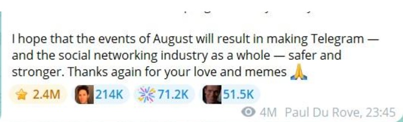 Фанаты мессенджера решили поддержать своего кумира платными звездочками. Набор «100 звезд» стоит 192 рубля (около 1000 тенге). За 12 часов пост собрал 2,4 млн звездочек. И платные звезды пользователи ставят до сих пор.