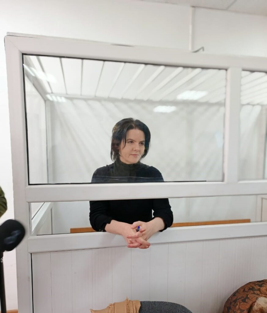 В освободившемся помещении получилась небольшая пресс-конференция с участием Т. Беловой. Обвиняемая, находясь за стеклом на скамье подсудимых, рассказала о том, что с ней сейчас происходит.