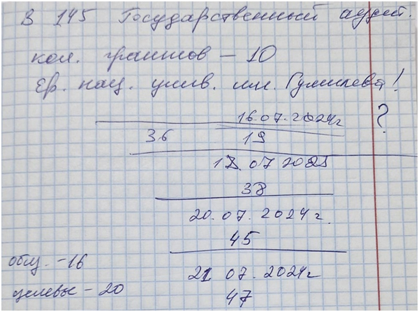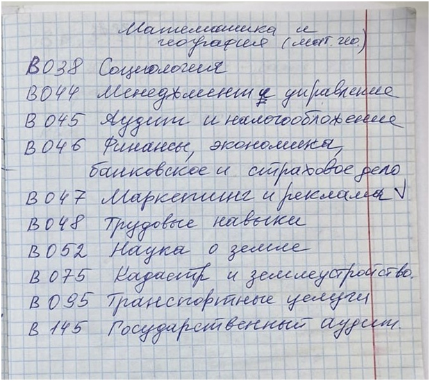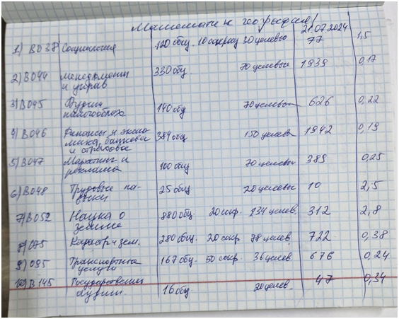 На каждую специальность я завел отдельную страницу. Каждый день я заходил на Testcentr и выписывал в тетрадь количество заявлений на эту специальность.