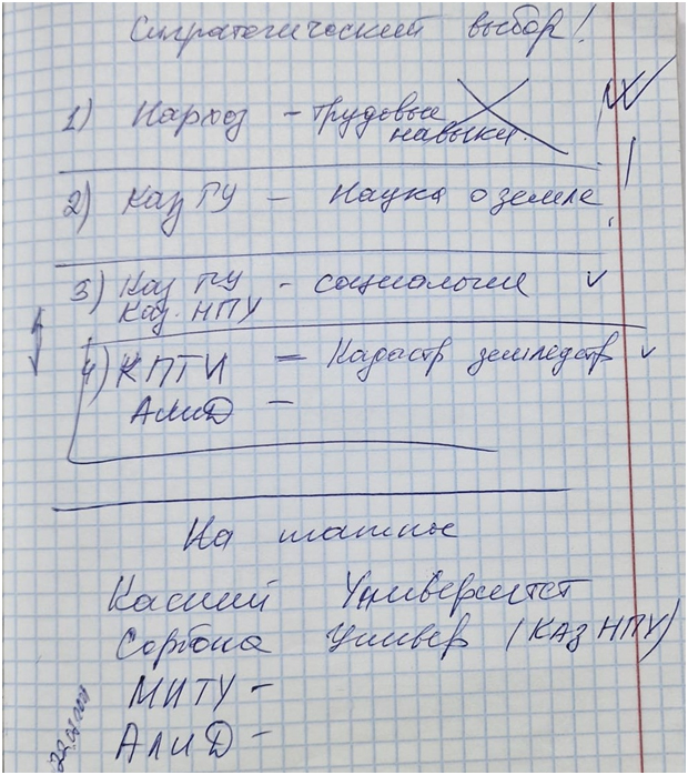 Звучало всё это очень красиво. Они меня чуть не уговорили. Я показал свои баллы и те специальности, на которые мы могли бы претендовать. Они сразу сказали, что на «платку» мы проходим. Цена – в районе 800 тысяч тенге в год. В итоге мы не стали рисковать.