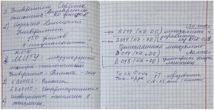 Важный момент: в данных обоих порталов нет сноски по языку преподавания. Надо каждый раз идти ножками и спрашивать на месте, на каком языке учатся студенты в конкретной группе. У меня ребенок закончил русскую школу. Ему объективно будет тяжело учиться на казахском.