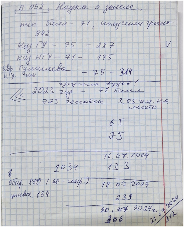 Мы получили 82 балла. Понятно, что в Нархоз мы не проходим. Поэтому я каждый день мониторил, искал в открытых источниках сведения за прошлый год. Естественно, никто не знает, какой будет конкурс в этом году. Но, как правило, примерно цифры совпадают с прошлым годом, плюс-минус пара баллов. У меня выходило, что с высокой вероятностью я попадаю на Науку о земле. Это специальности Классическая география, Гидрология, очень востребованная, в прошлом году как раз совпало с весенними паводками, и Метеорология.