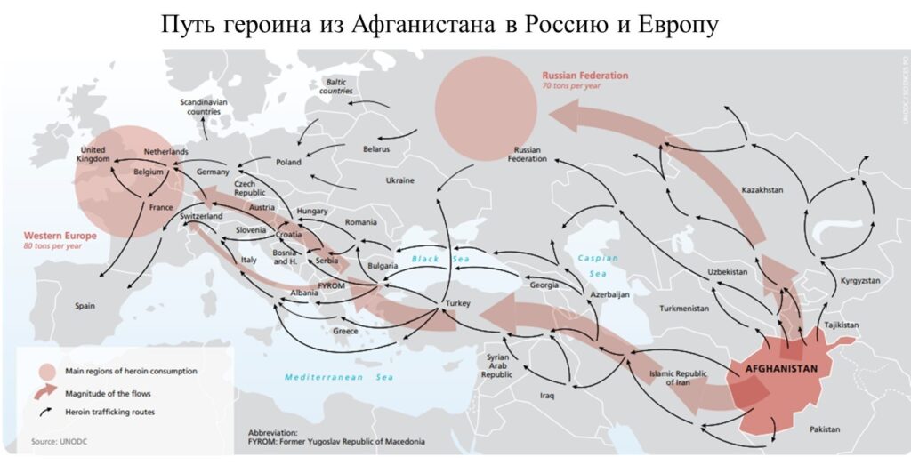 Но у этого узла есть и другая репутация. В отчете за 2010 год Управления ООН по наркотикам и преступности указано, что героин из Афганистана уходил двумя основными коридорами. Один — через Иран, Азербайджан и Турцию. Второй — через Туркменистан, Центральную Азию, Россию и Европу. И пограничный городок Тургунди, по всей видимости, тоже является частью наркотрафика.