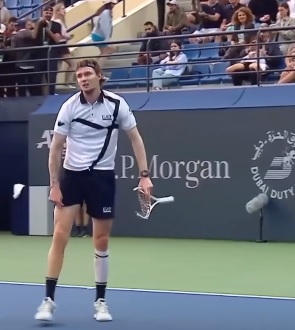 Матч запомнился не только спортивной составляющей. По ходу игры Александр сломал свою ракетку, а еще выместил свои эмоции на ком-то из болельщиков.