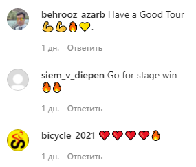 "Тур де Франс 2021! Начнём!" — написал спортсмен, и его команде сказали слова напутствия перед гонкой: