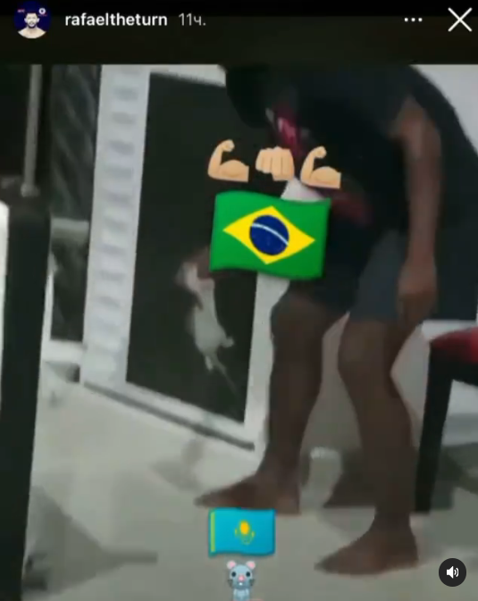 Бразилец Рафаэль Алвес перед боем с этническим казахом Дамиром Исмагуловым выложил в своем Instagram видео, на котором двое мужчин убивают крысу. Привлечь внимание Дамира бразилец попытался, добавив к мужчинам эмодзи с флагом Бразилии, а к крысе — эмодзи с флагом Казахстана. Таким образом Алвес намекал на свою стремительную победу над Исмагуловым.