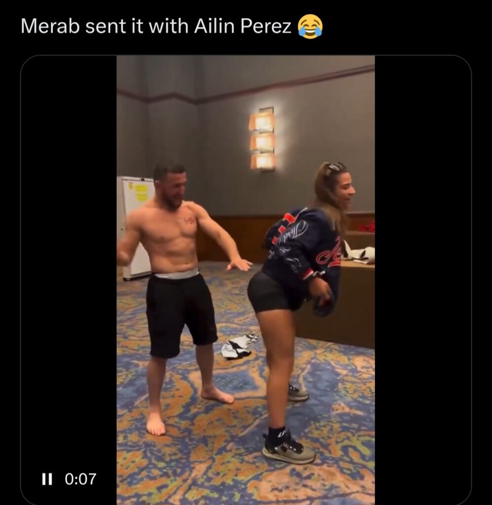 На записи, появившейся в Сети, Мераб вместе с девушкой-бойцом UFC из Аргентины Айлин Перес танцуют откровенные танцы. Айлин в коротких обтягивающих шортиках танцует тверк, направив пятую точку в сторону Мераба, который в свою очередь снимает майку и делает характерные движения эротического характера.