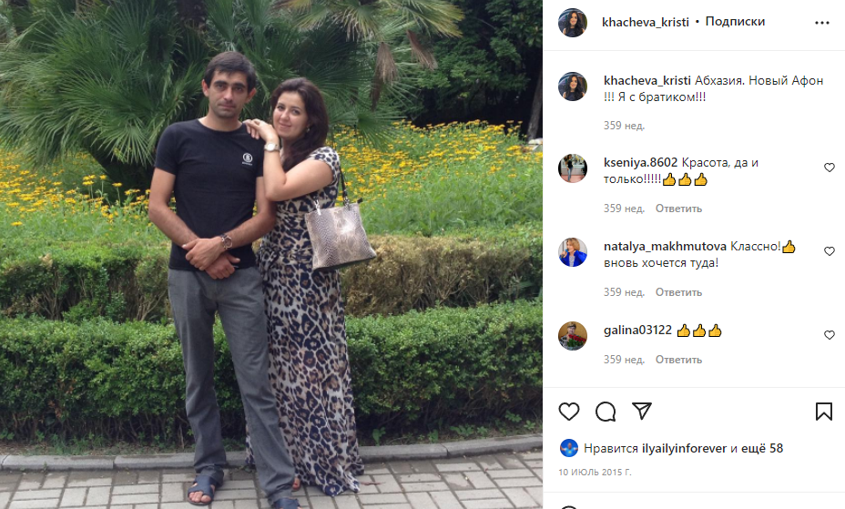 Однако из аккаунта его жены Кристины Ильиной (в девичестве Хачева) можно многое узнать о его жизни. Сама она говорит, что у неё есть греческие корни, а её брат живёт в Абхазии: