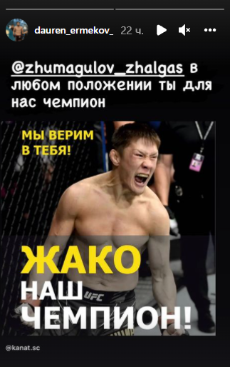 Также его поддержал боец Даурен Ермеков: