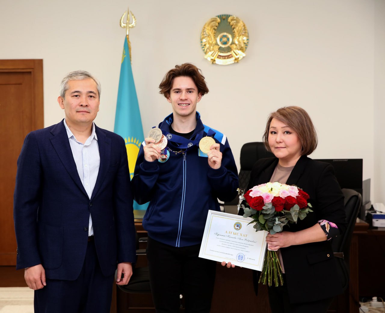 Вы не просто поднимаете престиж казахстанского фигурного катания, вы вдохновляете сотни молодых спортсменов верить в себя и двигаться вперед. Особые слова благодарности – твоему тренеру Асем Робертовне Касановой за высокий профессионализм, мудрость и искреннюю преданность своему делу. Как главный тренер сборной Республики Казахстан по фигурному катанию, она внесла особый вклад в развитие спорта и становление новых звезд на льду, – сказал Бейбут Шаханов.