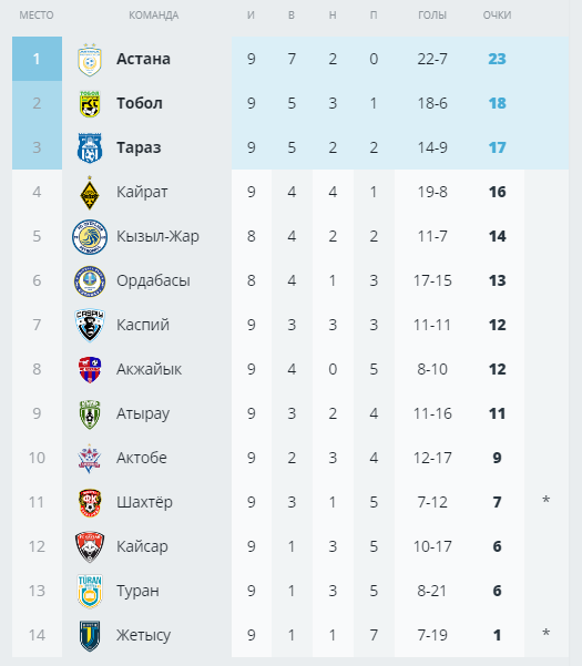 На первом месте остаётся "Астана", на второе поднялся "Тобол", на третье спустился "Тараз", передаёт медиа-портал Сaravan.kz.