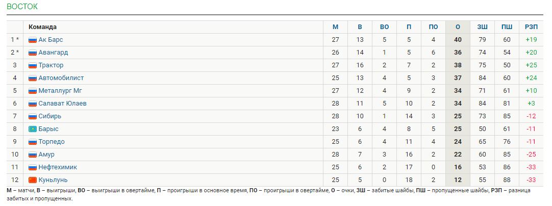 Вот как теперь выглядит турнирная таблица Восточной конференции, где выступает "Барыс":