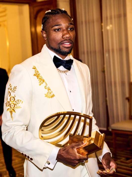 6-кратный чемпион мира Ноа Лайлес примерил шикарный белый костюм с золотыми вставками.