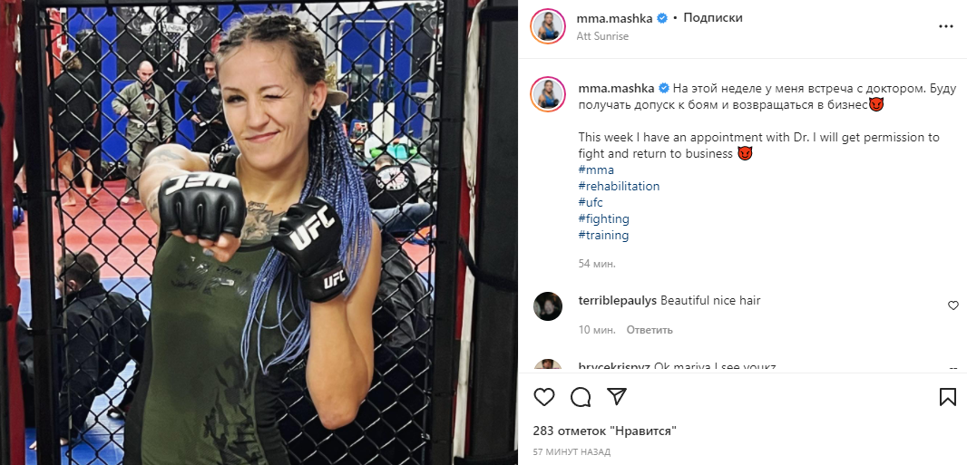 "На этой неделе у меня встреча с доктором. Буду получать допуск к боям и возвращаться в бизнес," — подписала она новый пост.