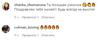 Спортсменка подписала фотографию: "Сегодня состоялось знаменательное событие в моей жизни! Я стала кавалером ордена "Курмет", который мне вручил председатель комитета по делам спорта и физической культуры Республики Казахстан Самат Ергалиев. Я очень благодарна за такую высокую награду! Буду стараться и дальше прославлять Казахстан!"