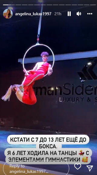 Она сообщила также, что шесть лет ходила на танцы с элементами гимнастики.