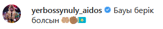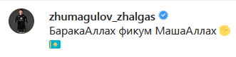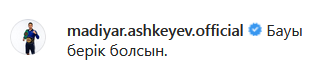 В комментариях новоиспеченного отца поздравило множество людей, в том числе и несколько известных бойцов и боксеров — Жалгас Жумагулов, Мадияр Ашкеев и Айдос Ербосынулы.