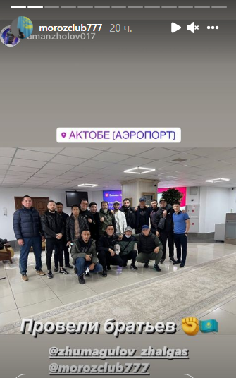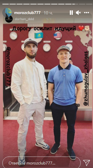 Сергей Морозов в сториз в Instagram дал знать, что вместе с Жалгасом Жумагуловым улетает в США, передаёт медиа-портал Сaravan.kz.