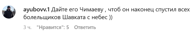 В комментариях болельщики рассказали, кого хотели бы увидеть следующим соперником Шавката. Многие высказались за бой с Хамзатом Чимаевым.