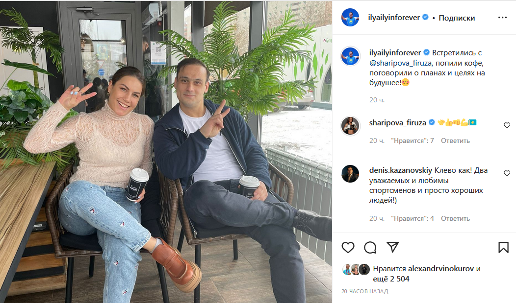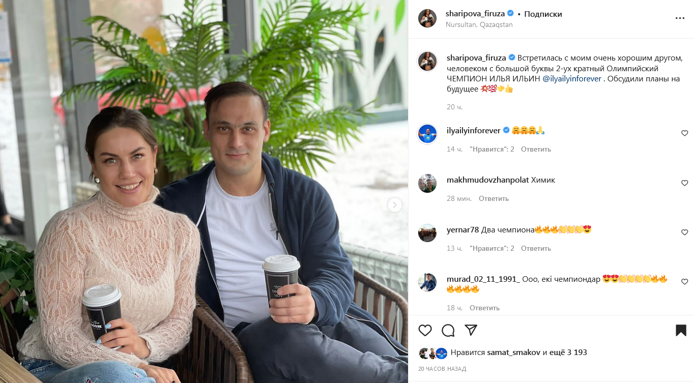 "Встретились с Фирузой Шариповой, попили кофе, поговорили о планах и целях на будушее!" — подписал фотогорафию Илья Ильин.