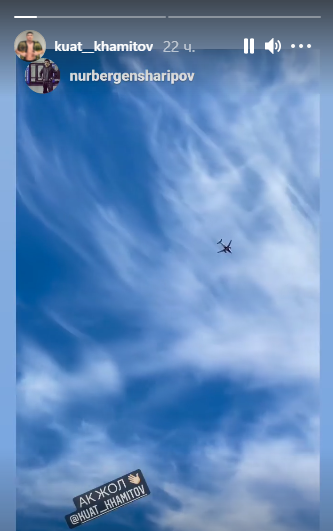 "Ал бисмилля деп кеттік. Алматы — Сочи", — подписал Хамитов пост, а также перепостил сториз, в котором провожавшие его засняли, как самолёт улетает. Бойцу пожелали хорошей дороги.