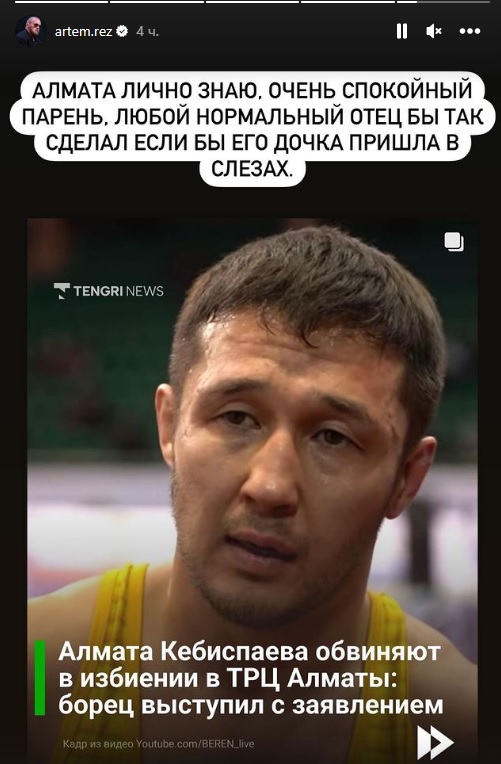 Комментируя происходящее, Резников сделал публикацию на своей странице в Инстаграм. Боец уверен в правоте Алмата.