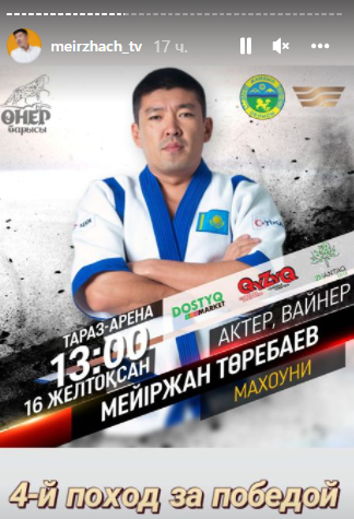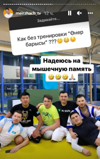 Актёр Мейржан Туребаев в сториз в Instagram объяснил, как собирается выступать на турнире по қазақ күресі, передаёт медиа-портал Сaravan.kz.