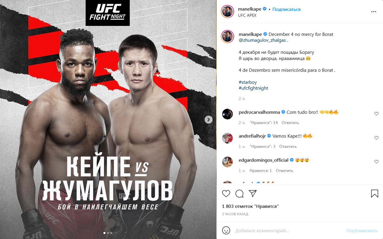 Анголец Манел Кейпе, который заявил, что поставит Жалгаса Жумагулова на колени, снова провоцирует его, передаёт медиа-портал Сaravan.kz.