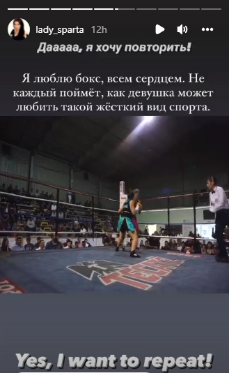 Сатыбалдинова подписала видео со своим боем: "Да, я хочу повторить! Я люблю бокс всем сердцем. Не каждый поймёт, как девушка может любить такой жёсткий вид спорта".