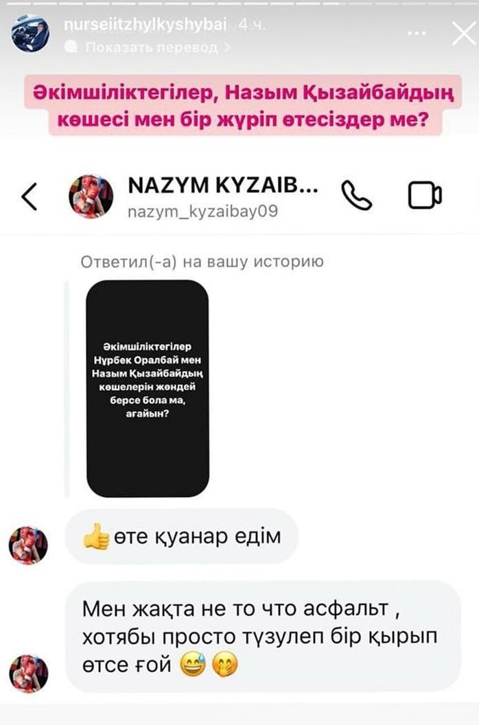 "Распространенные в социальных сетях видеоматериалы, демонстрирующие якобы проведение ремонта улиц в селе Иргели Карасайского района, где проживает заслуженный мастер спорта Республики Казахстан по боксу Назым Кызайбай, являются фейковыми и не соответствуют действительности. Призываем общественность критически относиться к информации, распространяемой в социальных сетях, и доверять только официальным источникам", — добавили чиновники.