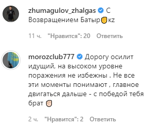 В числе прочих его поздравили с победой Жалгас Жумагулов и Сергей Морозов: